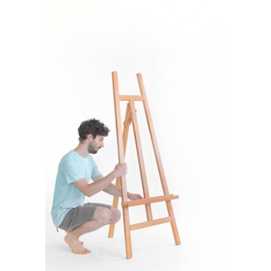 <p>Enostavno, priročno in lahko lira stojalo iz bukovega lesa. Nudi stabilnost, dobro uravnoteženost in lahko nosi platna in podlage do velikosti 200cm. Lesena polička nosi podlage tudi do 4 cm debeline in ima šest možnih stopenj nastavitve višine. Zadnja noga je gibljiva in omogoča nastavitve naklona. Stojalo ne nudi možnosti pritrjevanja platna z zgornje strani, kljub temu je primerno za slikanje. </p>