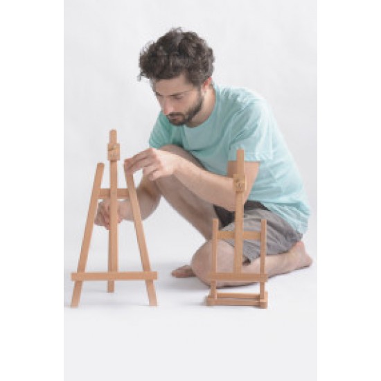 Miniatura Lira stojala v velikosti 48 cm. Drsna zgornja sponka omogoča fiksiranje platna ali druge podlage na poličko.