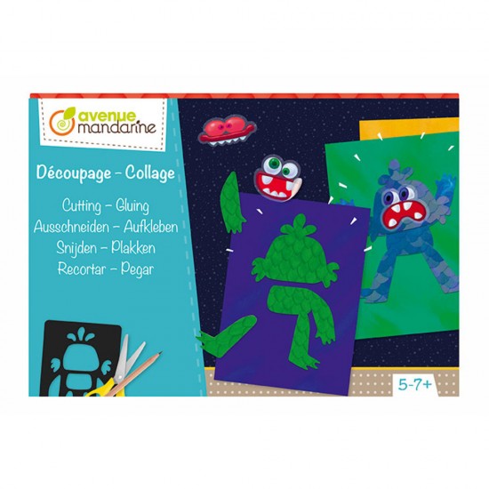 Ustvarjalni set za izdelavo ljubkih pošasti. Set je odlična izbira za urjenje veščine rezanja, lepljenja in risanja in dela s šablonami. S šablono lahko ustvariš 6 različnih pošasti. Primerno za starostne skupine med 5 in 7 letom starosti.