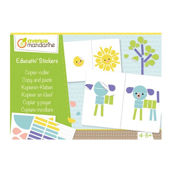 Ustvarjalni set z nalepkami. Vsebuje 18 ilustracij in nalepke s katerimi je potrebno poustvariti motiv. Igriva aktivnost, ki spodbuja sposobnosti opazovanja in koncentracije. Primerno za otroke 4 do 5 let.
