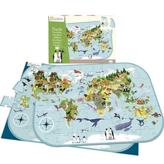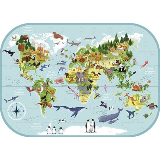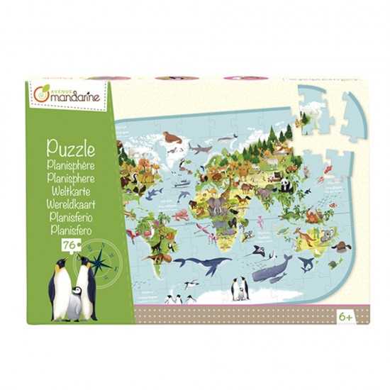 Sestavljanka z večjimi koščki (76), ki predstavlja živalski svet po vseh celinah sveta. Primerno za starosti od 6 let dalje.