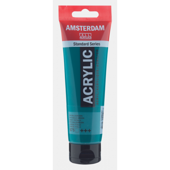 Akrilna barva Amsterdam je vrhunski izdelek, proizveden v Evropi. Kolekcija nudi izjemen nabor barvnih odtenkov, ki ustrezajo tako začetnikom kot profesionalnim slikarjem . Barve so izdelane iz čistih pigmentov z maksimalno svetlobno obstojnostjo in akrilnega veziva brez dodatkov, ki ustvarja kakovosten in permanenten barvni film. Barve so odporne na atmosferske vplive in ob ustrezni preparaciji podlage odlične za stenske poslikave. So brez vonja, redčijo se lahko z vodo, priporočljiva pa je uporaba medijev.