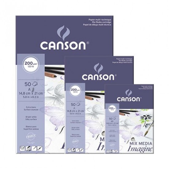 Blok Canson Imagne je prepoznaven po listih s svilnato teksturo, kar ohranja naravni videz in izjemen občutek na dotik. Njegova tekstura, absorbacijska zmogljivost in teža (200 g) omogočajo idealno podporo za suhe in mokre tehnike, kot so akvarel in gvaš. Canson Imagine blok vsebuje liste čiste bele barve, s čimer zagotavlja odličen kontrast in harmonične barve. Na voljo je v štirih dimenzijah A5, A4, A3 in A2.