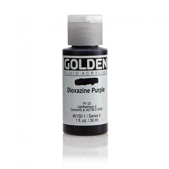GAC FLUID je kolekcija profesionalne akrilne barve vrhunske kakovosti. Akrilno vezivo je bolj tekoče,kot pri običajnih akrilnih barvah.To je doseženo s posebnim kemijskim postopkom obdelave veziva in ne z dodatnim redčenjem. Koncetracija pigmenta na enoto veziva je povsem enaka kot pri heavy body liniji Golden akrilov (gostejših).Odlične so za apliciranje s pršenjem, tehnike vpijanja, kaligrafijo, poslikave tekstila, marmoriranje, mešanje z geli in pastami.
