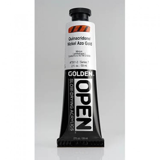 Open akrilne barve imajo podaljšan čas sušenja. Sušijo se občutno dlje od običajnih akrilnih barv, s tem omogočajo odlično prelivanje barvnih slojev, stapljanje tonov, uporabo v toplejših prostorih ali pri slikanju na soncu.Barvna pasta Open akrilov je rahlo mehkejša od ostalih Golden kolekcij. Uvrščajo pa se v sam vrh kakovosti profesionalnih slikarskih barv.
