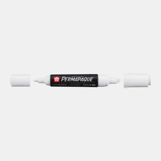 Marker Permapaque z dvojno konico, proizvajalca Sakura, primeren za različne površine kot so: papir, les, kovina, plastika…, trajna obstojnost in prekrivnost.