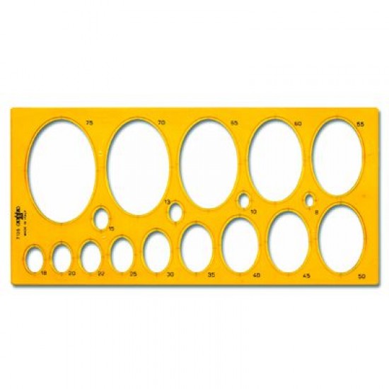 Arhitekturna profi šablona iz transparentno oranžnega materiala, s simboli elips.