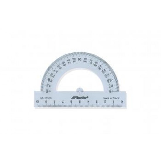 Kotomer oblike polkroga ima na obodu označene kotne stopinje za lažje merjenje kotov od 0 do 180°.