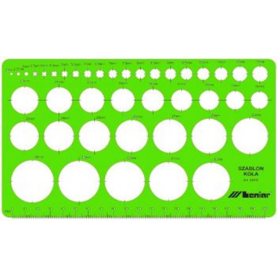 Šablona s krogi iz transparentnega materiala, s simboli krogov od 1 do 34 mm.