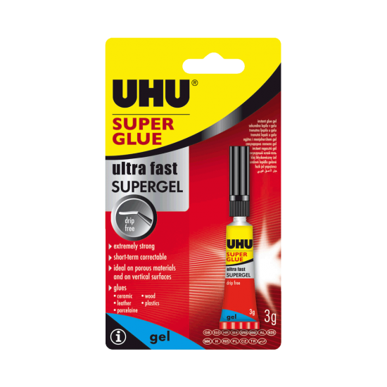 Sekundno lepilo v gelu je zelo močno lepilo v gelu in ne kaplja. Idealno je za porozne materiale in za lepljenje na vertikalnih površinah. Zlepljena površina omogoča prilagajanje še nekaj sekund. Primerno je za lepljenje lesa, porcelana, različne plastike, kovine, gume itd v nekaj sekundah.