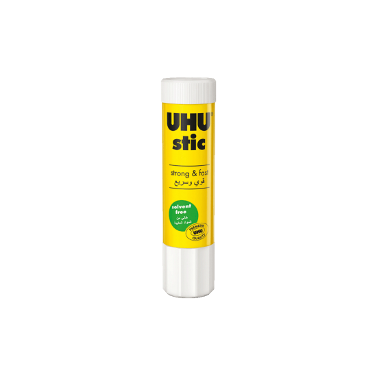 Lepilo v stiku, proizvajalca UHU, je belo lepilo s pokrovčkom z vijačnim sistemom, kar preprečuje, da bi se lepilo izsušilo. Primerno za natančno lepljenje različnih vrst papirja in kartona. Zaradi svoje oblike in lastnosti je prijazen do otrok, saj ne vsebuje topil. Embalaža omogoča hiter, čist in enostaven nanost lepila. Primeren je za uporabo v šoli, pisarni in doma. Na voljo je v pakiranjih 8.2 g, 21 g in 40 g.